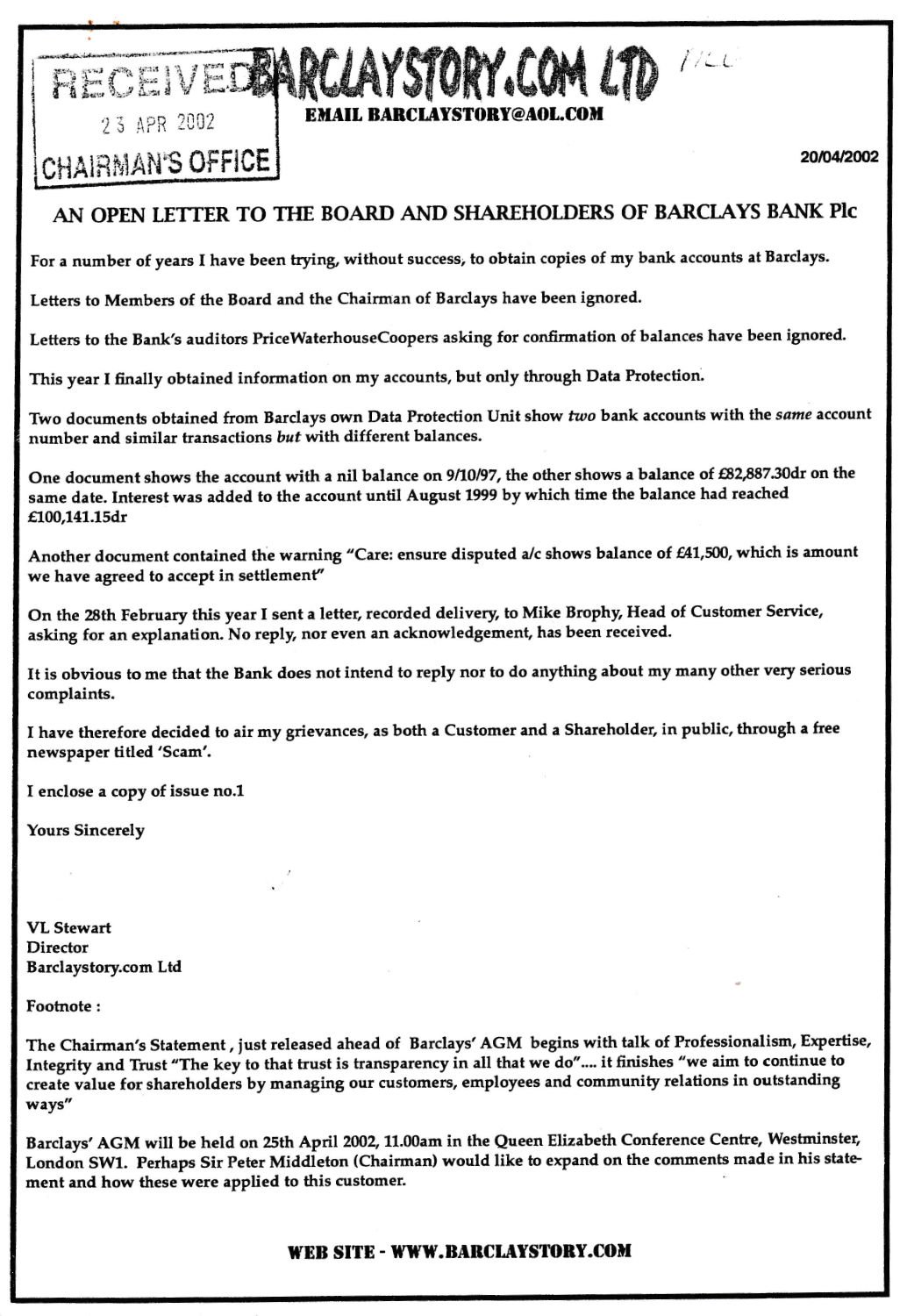 I wrote many letters of complaint directly to the Chairman and other members of the Board of Barclays and copies of those were in the SAR which show numerous stamped “RECEIVED CHAIRMAN’S OFFICE”.